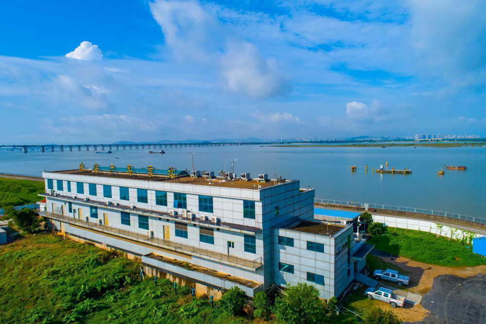 廣昌泵站位于西江磨刀門水道珠海大橋上游,占地面積71畝,共有一、二期兩座泵房,泵站采用河心式取水方式,總取水能力230萬立方米/日。每年豐水期(汛期)廣昌泵站是珠海東部以及澳門的主力取水泵站,而枯水期(咸期)則主要作為珠海原水供應系統(tǒng)中“西水東調來水”(上游平崗泵站、竹洲頭泵站或竹銀水庫來水)的中途轉輸水泵站,是珠海和澳門原水供應系統(tǒng)中重要的樞紐泵站。