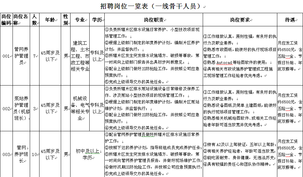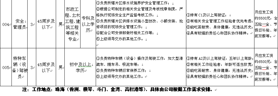 【珠海供排水管網(wǎng)有限公司】招聘簡章