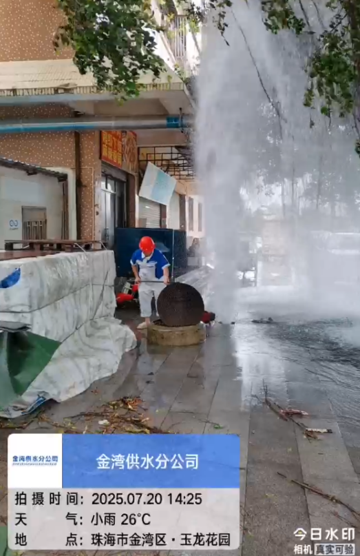 7月20日下午,金灣文華路11號(hào)的消火栓被強(qiáng)風(fēng)刮倒的大樹撞斷,3米高的水柱在狂風(fēng)中噴涌。接到消息后,搶修人員立即穿著被雨水浸透的工作服匆匆趕到,參與搶險(xiǎn)的黃師傅回憶道,“當(dāng)時(shí)風(fēng)雨未停,但看到噴涌的水柱,就顧不上那么多了。”此次搶險(xiǎn)僅用30分鐘處理完畢,無用戶受影響,創(chuàng)造了臺(tái)風(fēng)天氣搶修新速度。