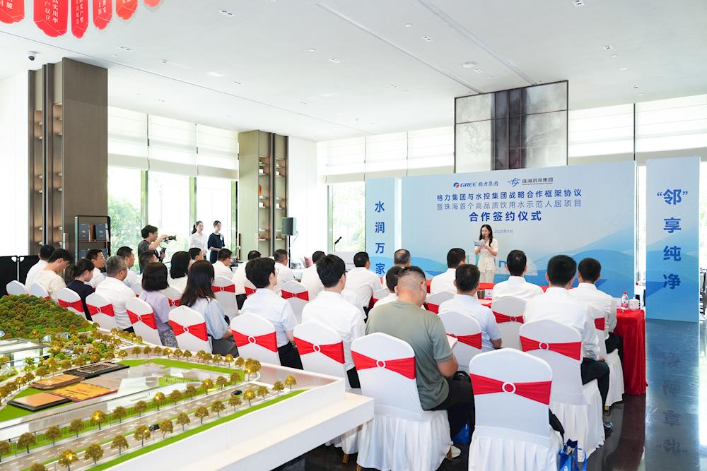 當(dāng)天,項(xiàng)目合作雙方——珠海格力集團(tuán)有限公司與珠海水務(wù)環(huán)境控股集團(tuán)有限公司簽署戰(zhàn)略合作框架協(xié)議,合作圍繞項(xiàng)目資源合作、供排水保障服務(wù)、工程領(lǐng)域及水務(wù)科技合作創(chuàng)新等維度展開,雙方將對(duì)接海島水資源利用方案、推進(jìn)高品質(zhì)飲用水入戶,水控集團(tuán)還將為格力集團(tuán)項(xiàng)目提供“全鏈條”水務(wù)支持,并以新規(guī)高品質(zhì)人居項(xiàng)目為試點(diǎn),推進(jìn)市政直飲水入戶,探索水務(wù)科技應(yīng)用。簽約儀式上,雙方共同啟動(dòng)珠海首個(gè)高品質(zhì)飲用水示范人居項(xiàng)目。此次合作既是國(guó)有企業(yè)跨領(lǐng)域協(xié)同服務(wù)民生的創(chuàng)新實(shí)踐,也為珠海構(gòu)建更安全、更健康的城市供水網(wǎng)絡(luò)按下“加速鍵”。